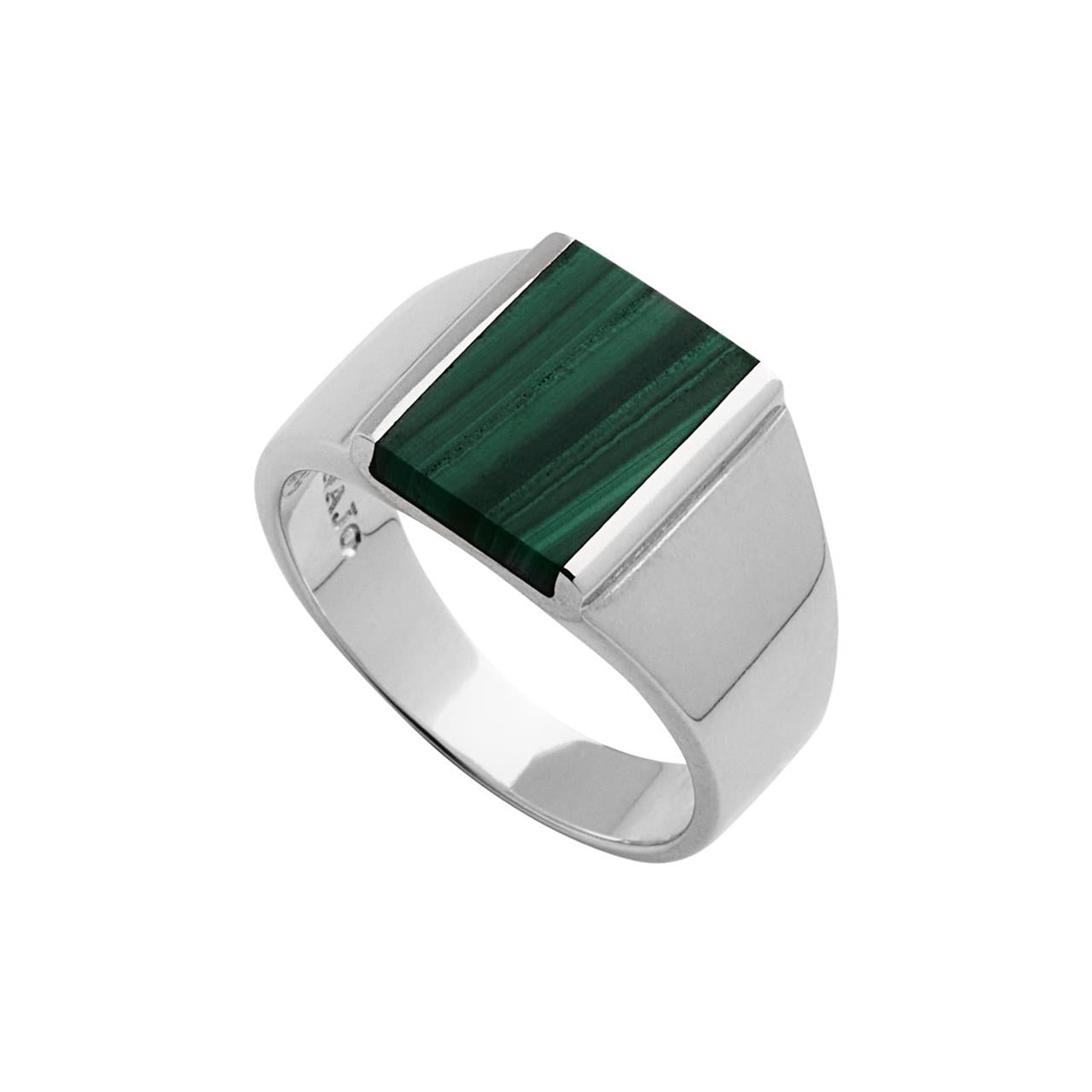 In ancient times, alchemists wove together elements of science, mysticism and astrology to pursue the ultimate transformations. The statement Alchemist Ring celebrates the spirit of their quests, merging impeccable craftsmanship with glittering metal and a banded celestial gemstone. The tapering sterling silver band features an inlaid Malachite slice, the enigmatic stone of transformation.